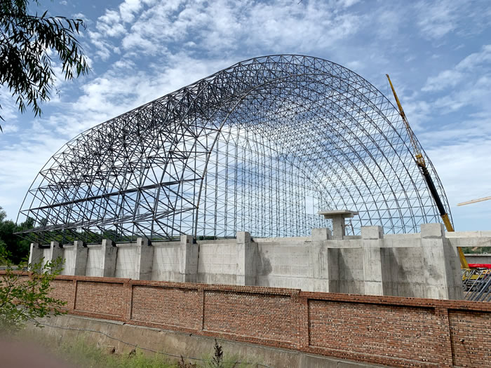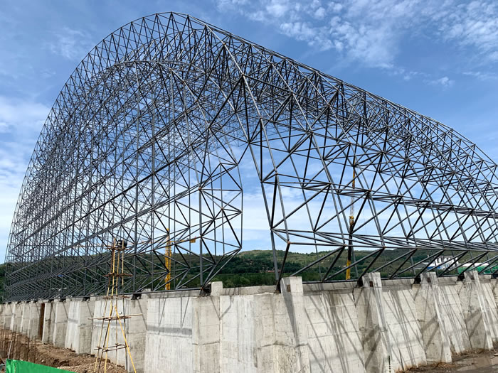 (2)网架加工前应对现场尺寸进行复测,确认无误后方可进行加工、安装;网架制作、运输、安装应遵守《空间网格结构技术规程》JGJ7-2010、《钢网架义马螺栓球节点》JG/T 10-2009、《钢网架义马螺栓球节点用高强度螺栓》 GB/T 16939-2016、《义马钢结构义马工程义马施工规范》 GB50755-2012、《义马钢结构义马工程义马施工质量验收标准》 GB50205-2020。